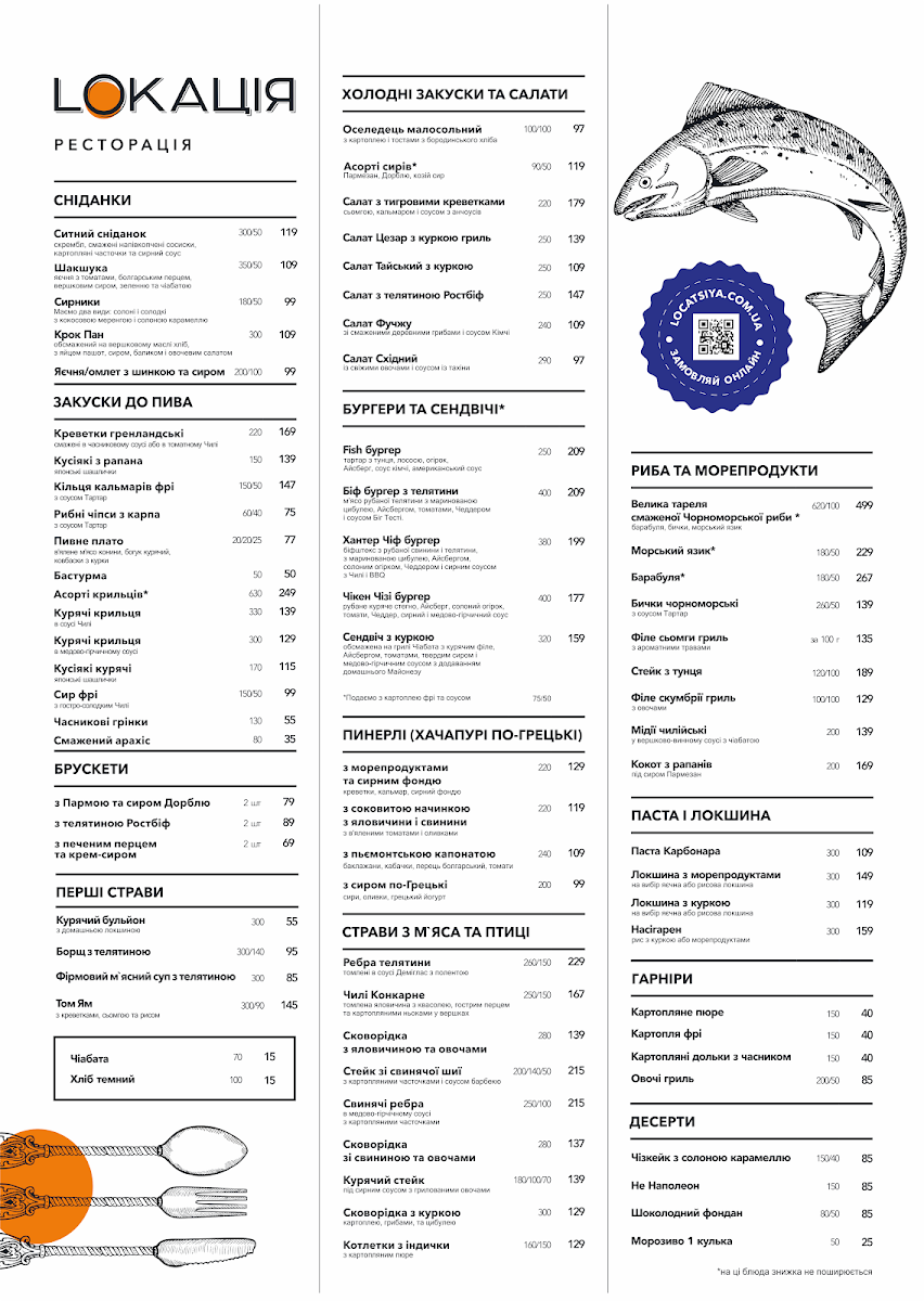 Welcome to Restoratsiya Lokatsiya, an exciting culinary destination located on Prymorska St in Pivdenne, Odesa Oblast, Ukraine. Here, the menu is a delightful fusion of flavors that showcases both local and international dishes.